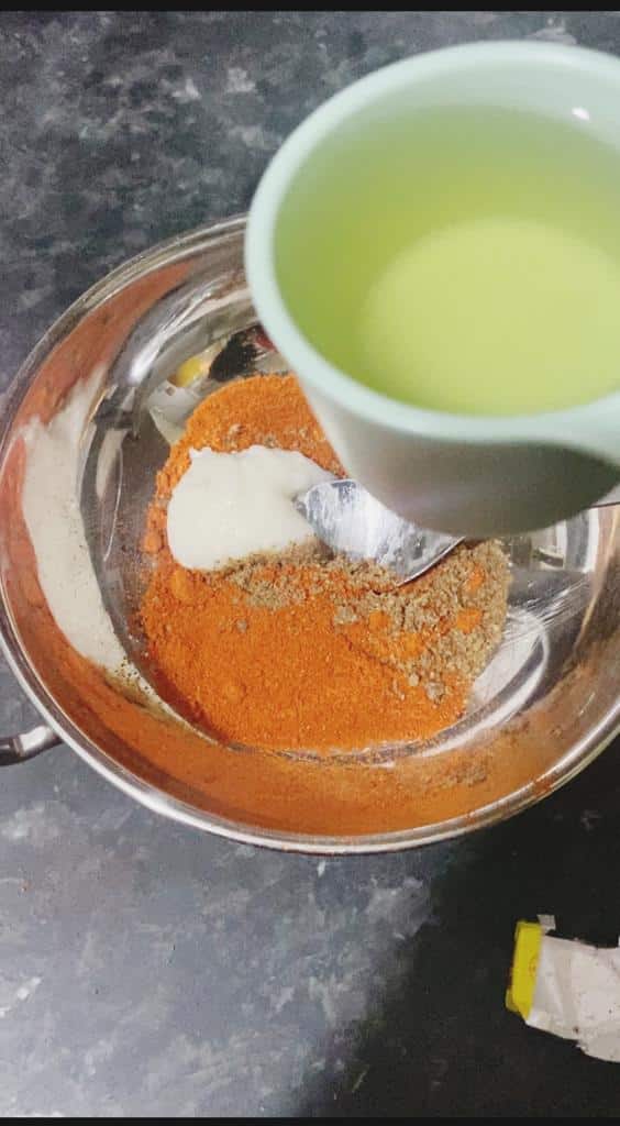 Add salt according to your taste, a teaspoon of paprika powder, and a splash of water for consistency.